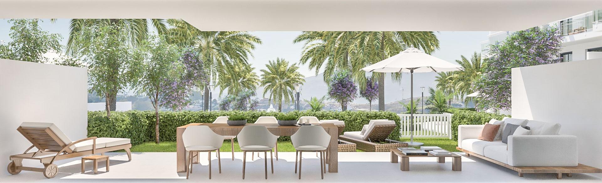 Gelegen in Las Lagunas de Mijas, biedt dit wooncomplex een selectie van woningen, waaronder appartementen, begane grond en penthouses. De locatie is ideaal voor degenen die op zoek zijn naar een rustige en goed verbonden omgeving, op slechts 3 km van de zee en 34 km van de luchthaven. De woningen zijn ontworpen om maximaal comfort en functionaliteit te bieden, met opties van 2, 3 en 4 slaapkamers en 2 badkamers. Elke woning is uitgerust met airconditioning, apparaten, ingebouwde kasten en elektrische rolluiken, wat zorgt voor een moderne en comfortabele levensstijl. BUITENRUIMTES De woningen beschikken over ruime terrassen en in het geval van de begane grond over privé tuinen, waardoor men kan genieten van het mediterrane klimaat. De penthouses bieden het extra voordeel van een solarium, perfect om te zonnebaden of van het uitzicht te genieten. De afstand tot de zee is slechts 3 km, waardoor men binnen enkele minuten van het strand kan genieten. Bovendien beschikt elke woning over een garage, wat comfort en veiligheid biedt voor de bewoners. BINNENRUIMTES Het interieur van de woningen is ontworpen met hoogwaardige materialen, zoals cementvloeren en porseleinen tegels. De indeling omvat ruime en lichte ruimtes, met een ontwerp dat het gebruik van de ruimte maximaliseert. De woningen zijn uitgerust met een video-intercom, die veilige en gecontroleerde toegang garandeert. De keuken is volledig uitgerust met moderne apparaten, en het airconditioningsysteem zorgt voor comfort in alle seizoenen van het jaar. GEMEENSCHAPPELIJKE RUIMTES Het wooncomplex biedt diverse gemeenschappelijke ruimtes, waaronder tuinen, een gemeenschappelijk zwembad en een kinderspeelplaats. Deze ruimtes zijn ontworpen voor het plezier van het hele gezin en bieden een veilige en aangename omgeving voor vrije tijd en ontspanning. Het zwembad is ideaal om af te koelen tijdens de zomermaanden, terwijl de tuinen een rustige ruimte bieden om te wandelen of te ontspannen.