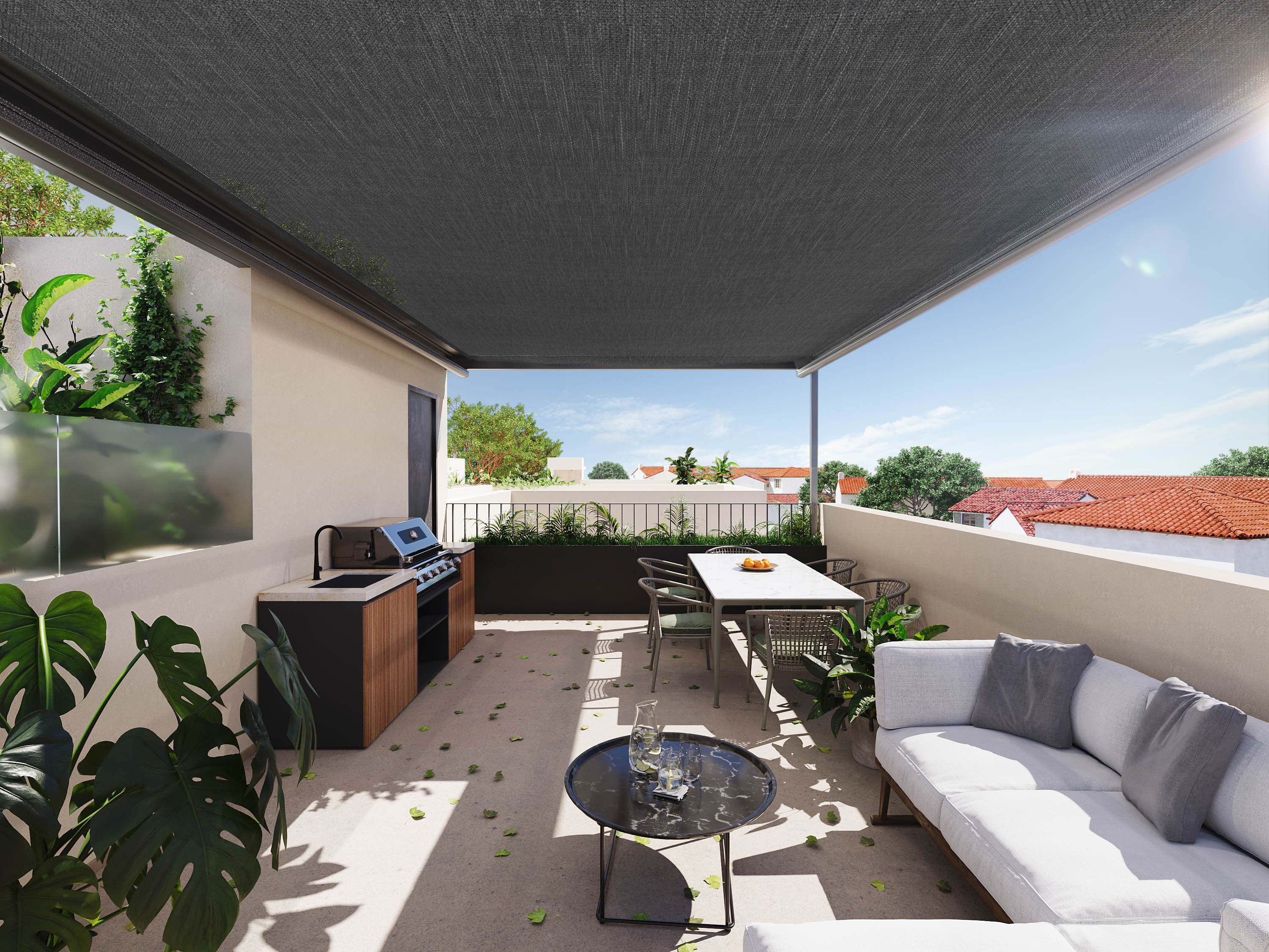 Gelegen in de prachtige stad Málaga, biedt deze exclusieve collectie rijtjeshuizen een unieke kans om te genieten van het leven aan de Costa del Sol. Met slechts vijf beschikbare woningen is elk ontworpen om maximaal comfort en functionaliteit te bieden. De nabijheid van de zee, op slechts 1 km afstand, biedt spectaculaire uitzichten en een ongeëvenaarde kustlevensstijl. Bovendien maakt de nabijheid van de luchthaven, op slechts 22 km, toegang en mobiliteit gemakkelijk, waardoor het een ideale optie is voor zowel permanente bewoning als een tweede huis. BUITENRUIMTES De rijtjeshuizen hebben buitenruimtes die uitnodigen om te genieten van het mediterrane klimaat. Elke woning heeft een privé solarium, perfect om buiten te ontspannen en van het uitzicht te genieten. De buitenarchitectuur integreert harmonieus met de omgeving en biedt een modern en aantrekkelijk ontwerp dat het natuurlijke landschap van Málaga aanvult. BINNENRUIMTES Het interieur van de rijtjeshuizen is ontworpen om comfort en stijl te bieden. De woningen beschikken over drie of vier slaapkamers, aangepast aan de behoeften van verschillende gezinnen. Met drie badkamers garandeert elke woning privacy en comfort. De porseleinen tegelvloeren geven een vleugje elegantie en duurzaamheid. Bovendien zijn ze uitgerust met moderne apparaten en ingebouwde kasten die de ruimte optimaliseren. De video-intercom voegt een extra niveau van veiligheid en gemak toe. Alle woningen hebben een garage, die een veilige parkeerplaats biedt.