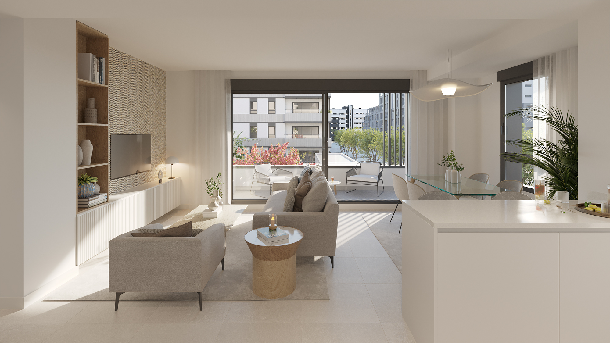 Gelegen in de bruisende stad Málaga, biedt dit exclusieve wooncomplex een selectie van 6 appartementen die zijn ontworpen om te voldoen aan de behoeften van de meest veeleisende klanten. Met een bevoorrechte locatie, op slechts 10 km van de luchthaven, zijn deze appartementen ideaal voor zowel degenen die op zoek zijn naar een permanente woning als voor degenen die een tweede woning willen in een van de meest aantrekkelijke steden van de Costa del Sol. De typologie van de appartementen varieert, met opties van 1, 2 en 3 slaapkamers, met de mogelijkheid om te kiezen tussen 1 of 2 badkamers, waardoor ze zich aanpassen aan verschillende levensstijlen en gezinsbehoeften. Elk appartement is ontworpen met het oog op comfort en functionaliteit, wat zorgt voor een gastvrije en moderne ruimte voor de bewoners. BUITENRUIMTES De buitenruimtes van deze residentie in Málaga zijn ontworpen om een aangename en ontspannende leefomgeving te bieden. Elk appartement heeft een privéterras, perfect om te genieten van het mediterrane klimaat en buitenmomenten. Bovendien beschikt de residentie over ruime groene zones die uitnodigen om te wandelen en van de natuur te genieten zonder het huis te verlaten. Deze groene gebieden verfraaien niet alleen de omgeving, maar bieden ook een ideale ruimte voor rust en recreatie. De nabijheid van de luchthaven, op slechts 10 km, voegt extra waarde toe voor degenen die op zoek zijn naar een strategische en goed verbonden locatie. BINNENRUIMTES De interieurs van de appartementen vallen op door hun moderne en functionele ontwerp. Uitgerust met hoogwaardige apparatuur, biedt elke unit een volledig uitgeruste keuken die het dagelijks leven van de bewoners vergemakkelijkt. De porseleinen tegelvloeren geven een vleugje elegantie en zijn gemakkelijk te onderhouden, terwijl de ingebouwde kasten veel opbergruimte bieden, waardoor elke vierkante meter van het huis wordt geoptimaliseerd. De indeling van de appartementen, met opties van 1 tot 3 slaapkamers en 1 of 2 badkamers, maakt personalisatie mogelijk volgens de behoeften van elke familie, wat zorgt voor een comfortabele en gastvrije ruimte voor iedereen. GEMEENSCHAPPELIJKE RUIMTES De residentie beschikt over een reeks gemeenschappelijke ruimtes die de woonervaring van de bewoners verrijken. Onder hen valt een gemeenschappelijk zwembad op, ideaal om van de zon te genieten en af te koelen tijdens de warme zomerdagen. Voor de kleintjes biedt de kinderspeelplaats een veilige en leuke ruimte waar ze kunnen spelen en socialiseren. De groene zones verfraaien niet alleen de omgeving, maar bieden ook een ideale ruimte voor rust en recreatie. Deze faciliteiten zijn ontworpen om een actieve en gezonde levensstijl te bevorderen, de interactie tussen buren te stimuleren en een gemeenschapsgevoel te creëren.